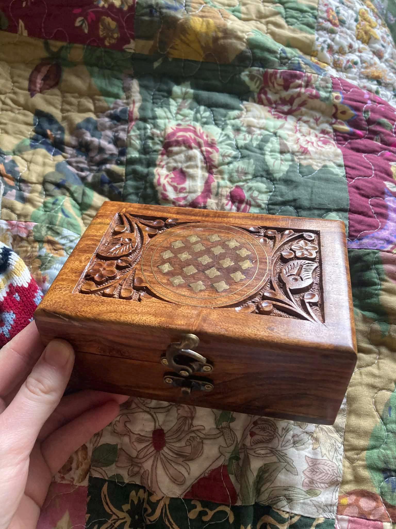 Hand-carved Sheesham (Rosewood) jewellery box